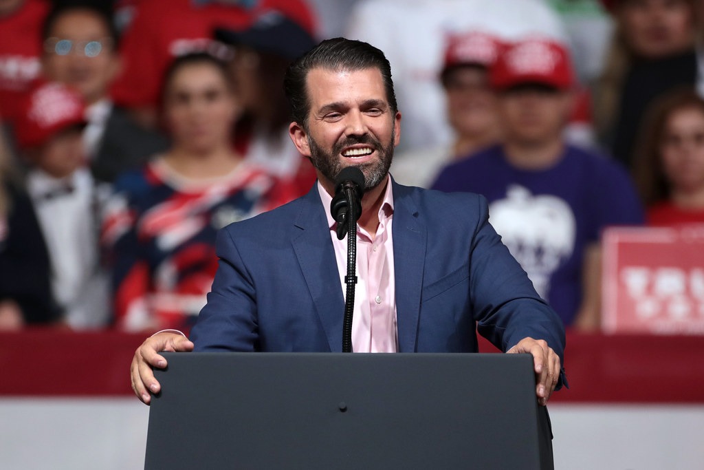 donald trump jr. spricht oft vor großem Publikum. Hier sieht man ihn voller Begeisterung bei einer Rede.