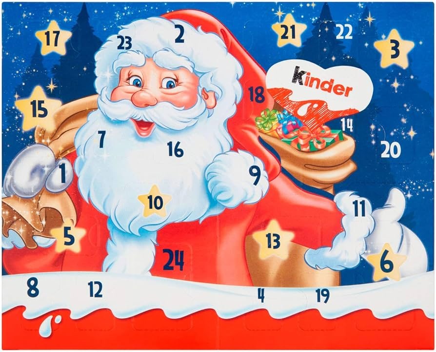 - Kinder Mix Adventskalender: Gefüllt mit Mini-Versionen von Kinder Schokolade, Bueno und Country. Ideal für Kinder, da er spielerisch gestaltet ist, oft als 3D-Haus.