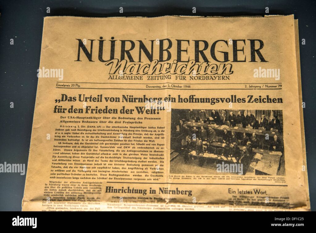 Front page of Nuremberg newspaper about the Nuremberg trials, Nuremberg, Germany Stock Photo – Alamy